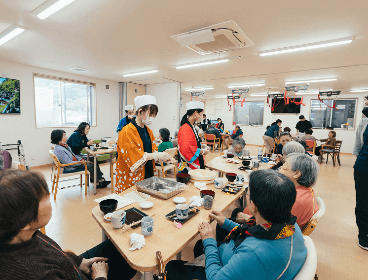 コミュニティ拠点やデイサービス、子ども食堂、農園などでの現場体験を通して、地域とのつながりを育んでいます。